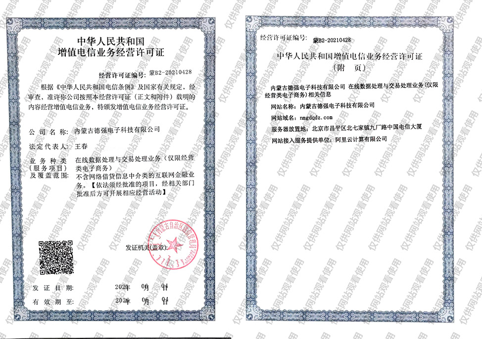Copyright © 內(nèi)蒙古德強(qiáng)電子科技有限公司 版權(quán)所有 蒙ICP備2021001683號(hào) 營(yíng)業(yè)執(zhí)照 蒙公網(wǎng)安備 15010202151247 電信增值許可證 蒙B2-20210428